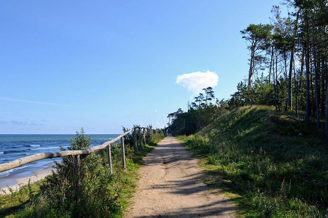 Jeśli masz ochotę na klifowe widoki, wybierz odcinek Karwia – Jastrzębia Góra – Rozewie. Zobaczysz latarnię morską, staniesz nad krawędzią wysokiego klifu i dojdziesz do symbolicznego punktu „Gwiazda Północy”. Po drodze czekają punkty widokowe i ścieżki, na których słychać tylko szum wiatru w koronach drzew i dalekie dudnienie fal.